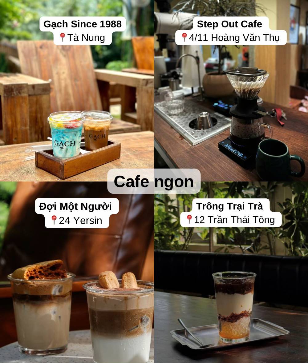 → Ngoài cafe ngon, không gian quán thường có view đẹp, nhiều chỗ chill như Đợi Một Người, Gạch Since 1988.