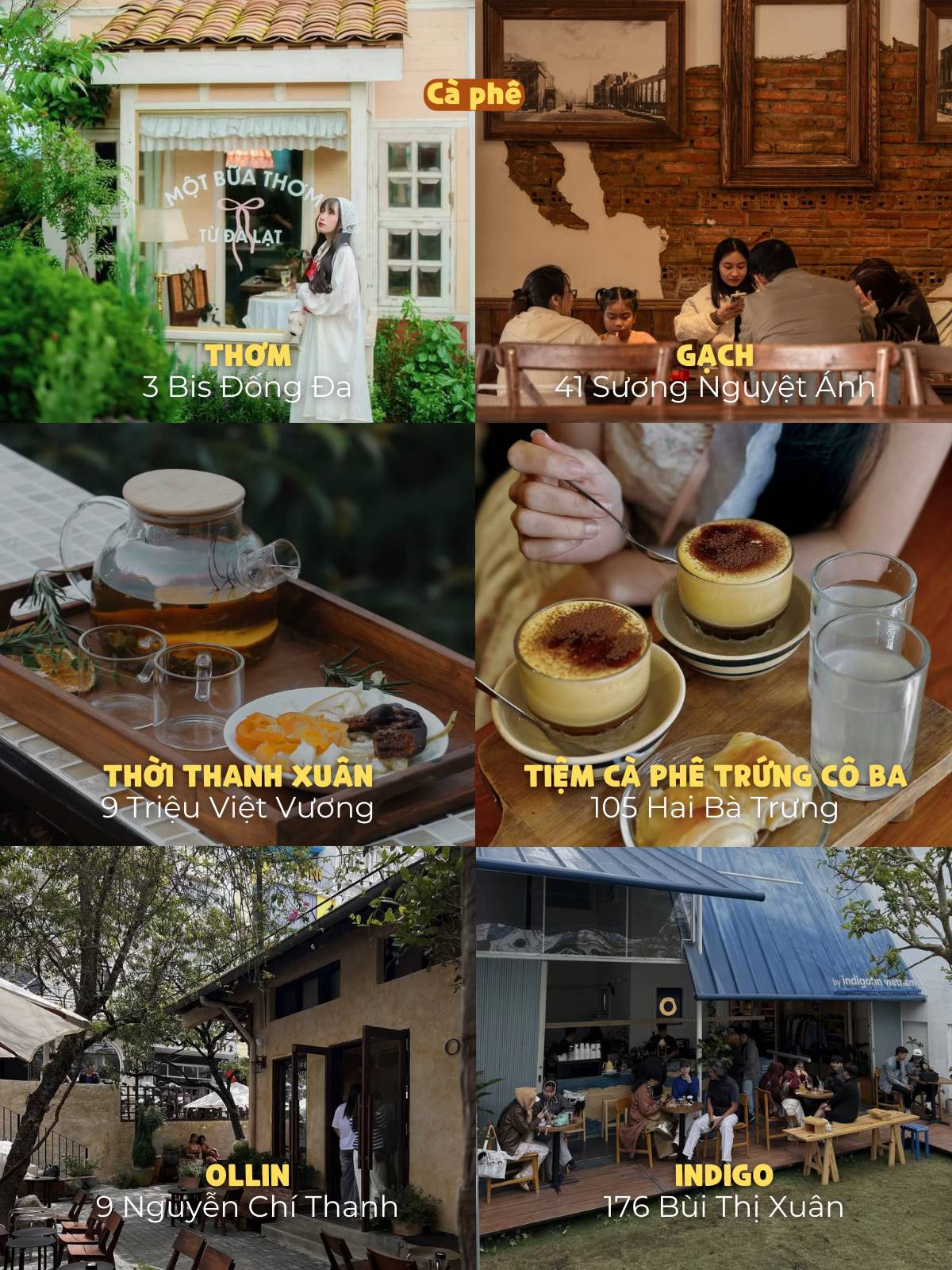 Đà Lạt vốn là thiên đường của những quán cà phê mang phong cách vintage, rustic đến hiện đại. Một vài cái tên nổi bật: