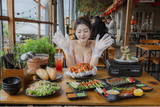 - Thực đơn BBQ đa dạng: bò, heo, gà, hải sản, rau củ.