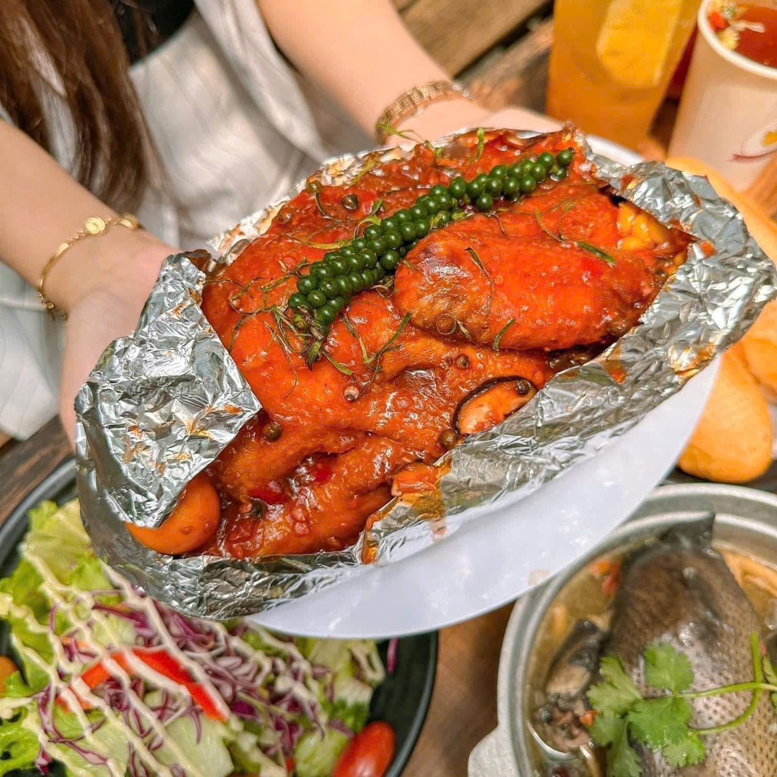 Nếu bạn đang băn khoăn Đà Lạt ăn gì, thì đừng quên ghé Tiệm gà Túk Túk để thưởng thức gà nướng sốt tiêu xanh. Vị cay nồng ấm áp, da giòn thịt ngọt kết hợp salad tươi mát và bánh mì giòn rụm chắc chắn sẽ mang đến một trải nghiệm ẩm thực khó quên trong chuyến đi phố núi.
