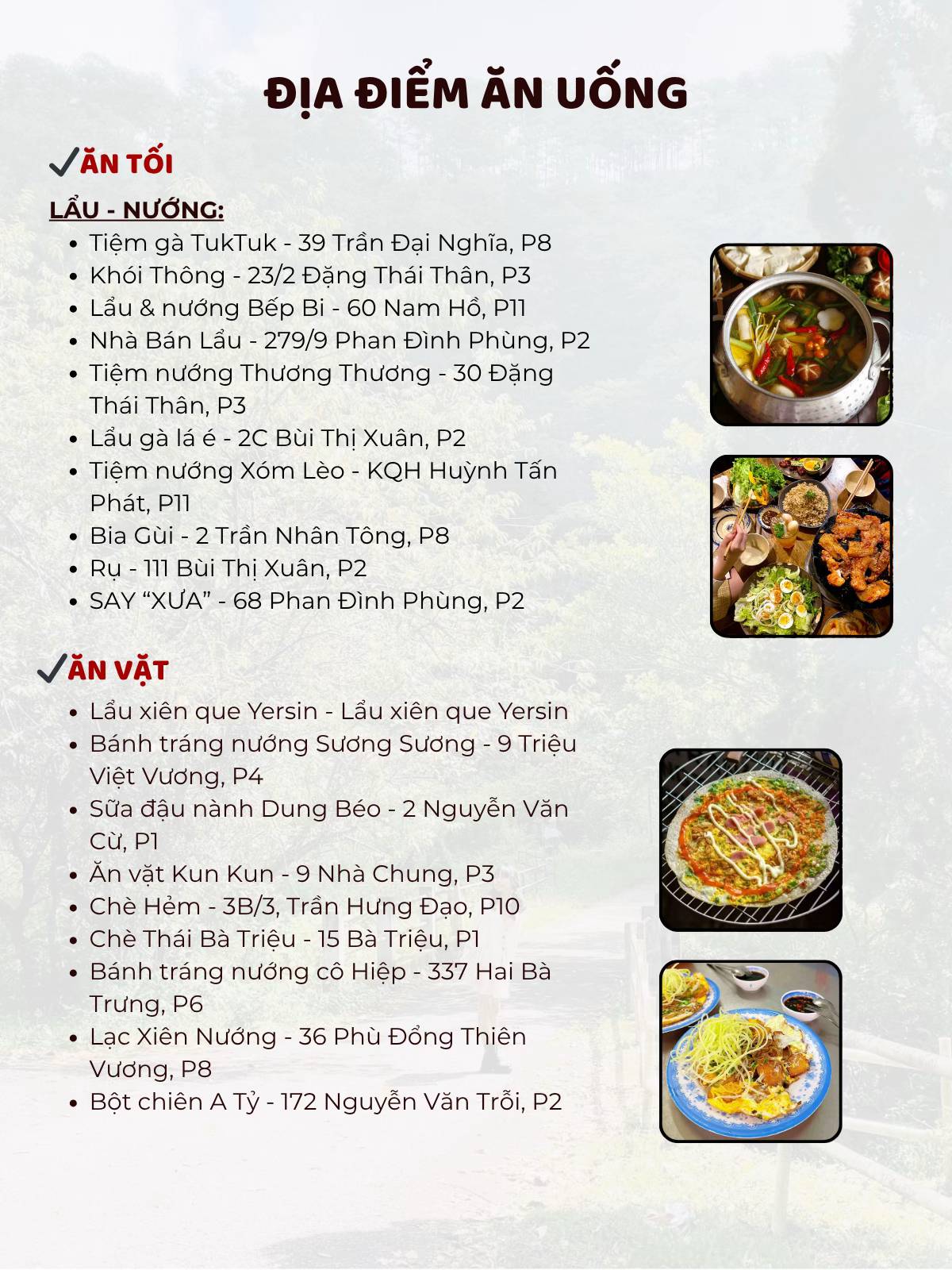 👉 Đừng quên lưu ngay list này để có hành trình vừa no bụng, vừa đầy ắp kỷ niệm và ảnh đẹp khi ghé thăm thành phố mộng mơ nhé! 🌸